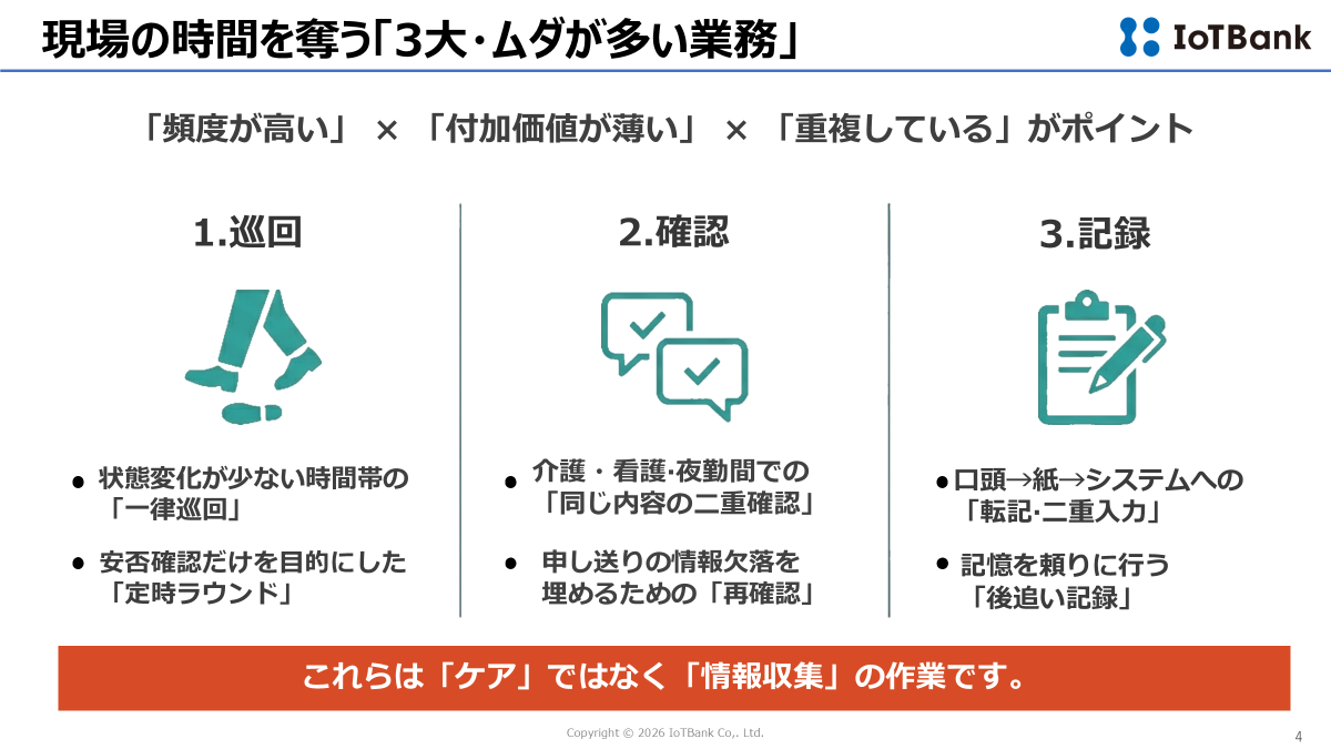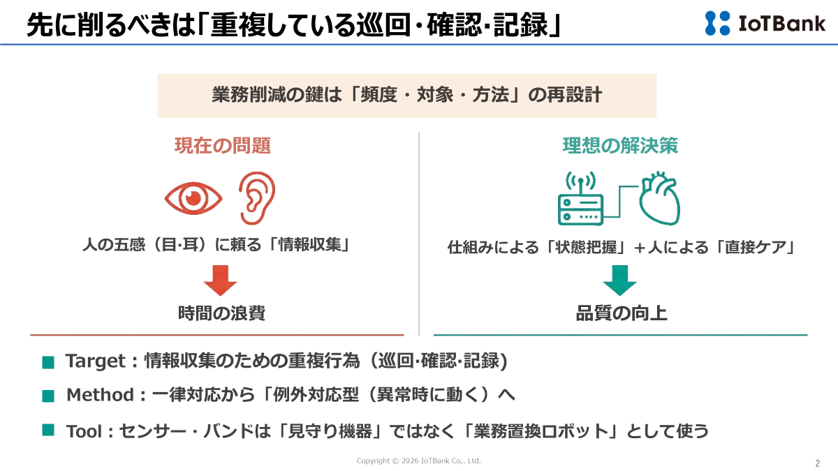 巡回・確認・記録を代行させて、人を本来のケアへ戻す発想転換